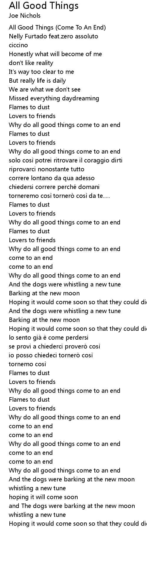 | [00:06.80] | All Good Things Come To An End |