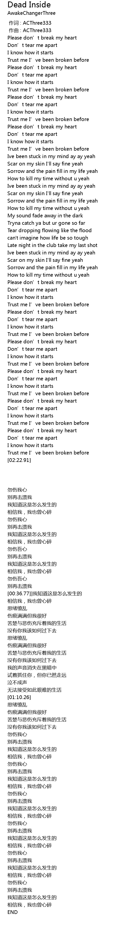| [00:00.000] | 作词 : ACThree333 |
