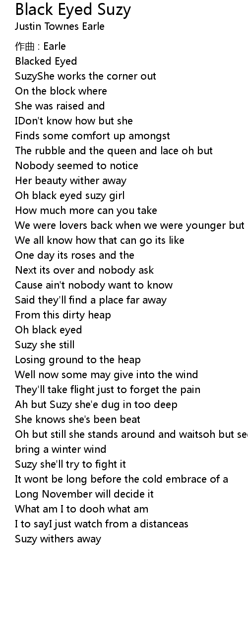 | Oh black eyed suzy girl | |