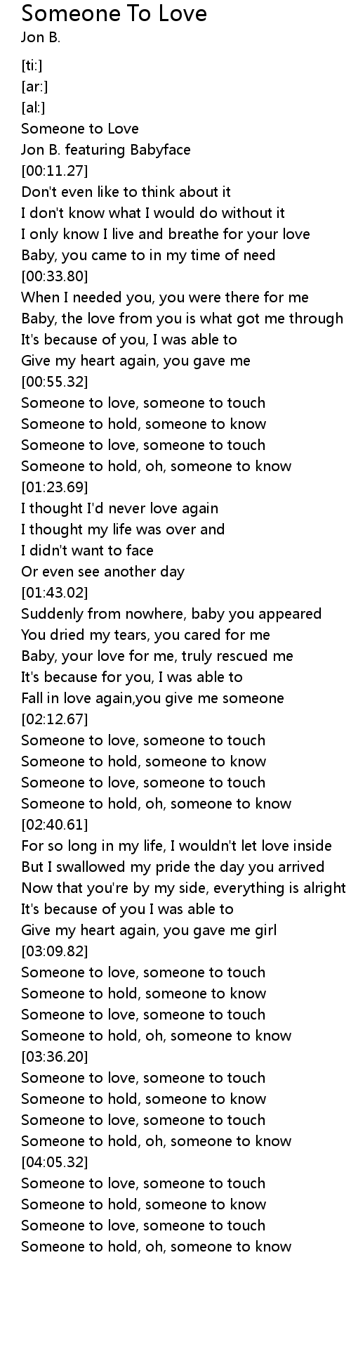 | [04:26.12] | Someone to hold, oh, someone to know |