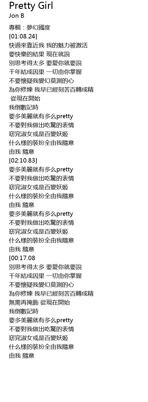 | [00:47.54] | yào duō měi lì jiù yǒu duō me pretty |