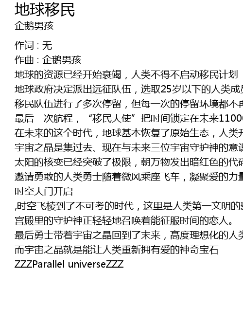 | 地球的资源已经开始衰竭,人类不得不启动移民计划 | |