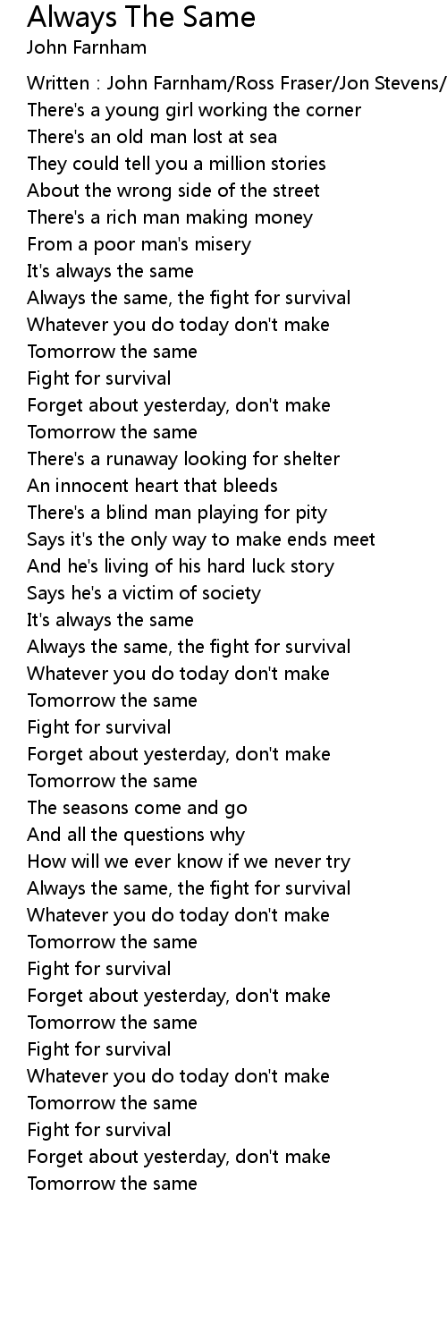 | Song | Always The Same |