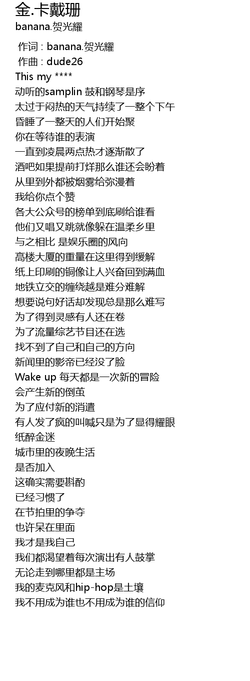 | [00:00.000] | 作词 : banana.贺光耀 |