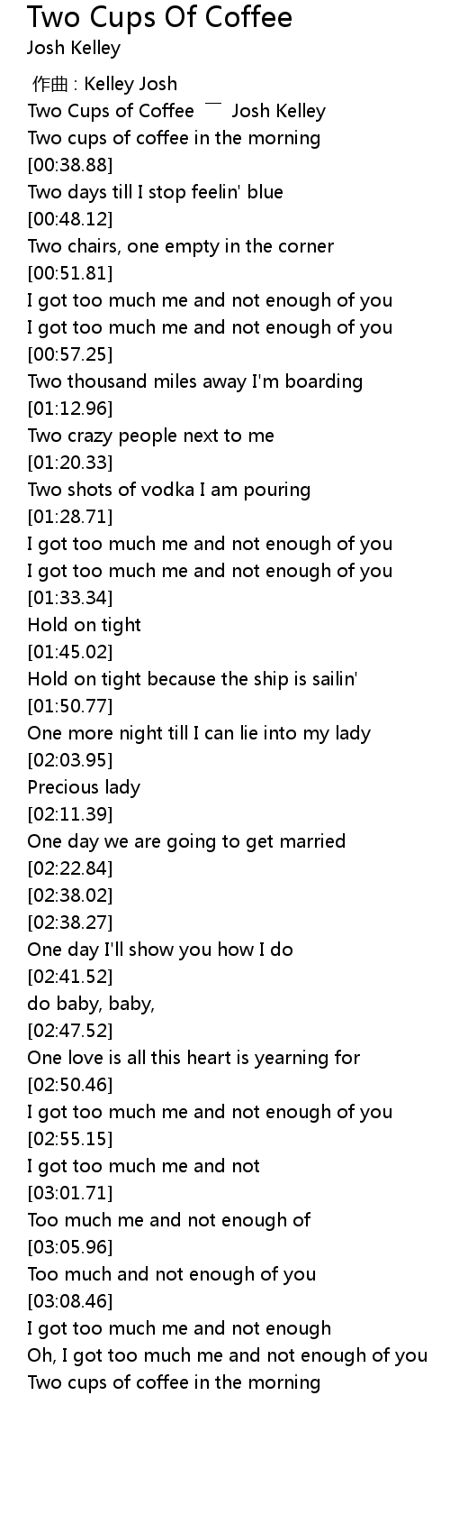 | [00:00.52] | Two Cups of Coffee Josh Kelley |