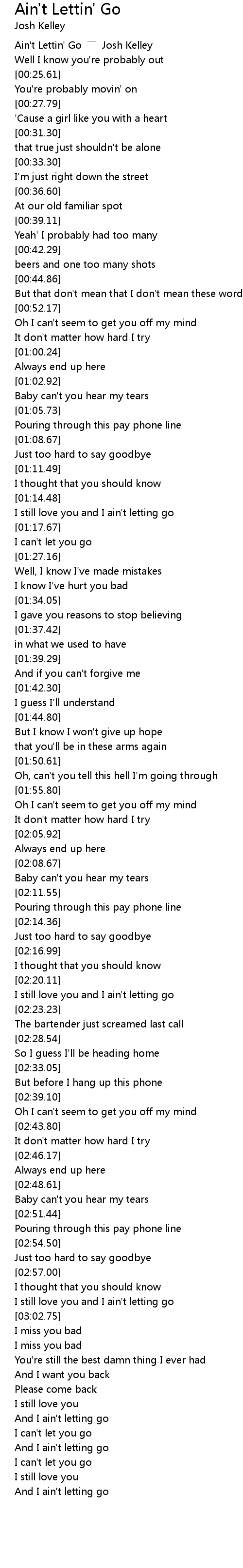 | [00:00.55] | Ain' t Lettin' Go Josh Kelley |
