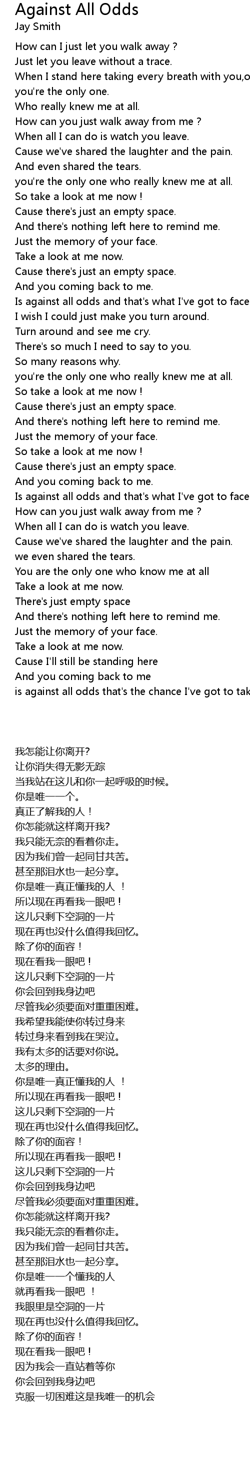 | [01:18] | Is against all odds and that's what I've got to face. |