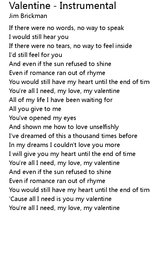 Valentine - Instrumental Lyrics
