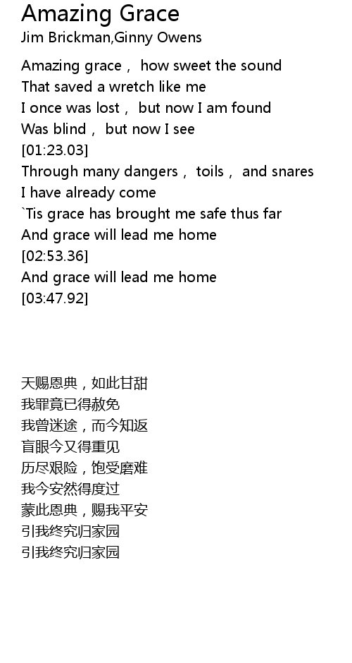 | [00:28.01] | Amazing grace, how sweet the sound |