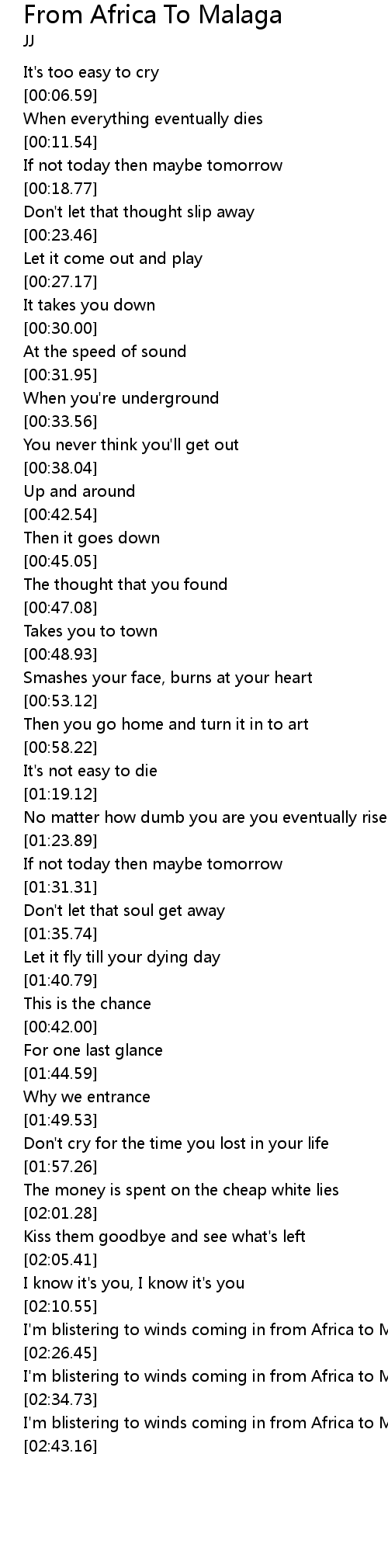 | [02:20.83] | I'm blistering to winds coming in from Africa to Malaga |