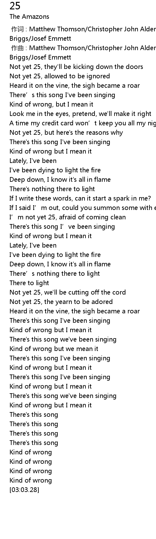 | [01:31.21] | I’m not yet 25, afraid of coming clean |