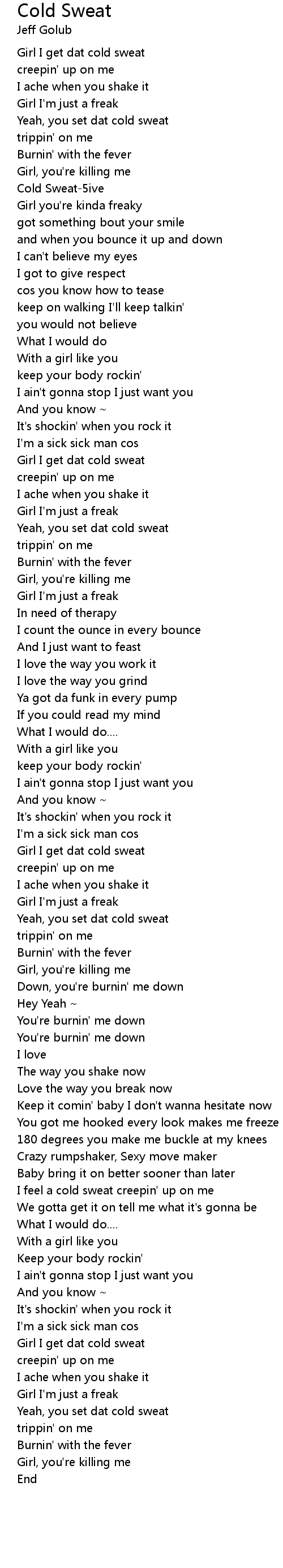 Girl I get dat cold sweat |