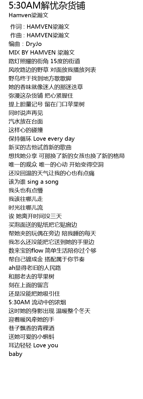 | [00:00.000] | 作词 : HAMVEN梁瀚文 |