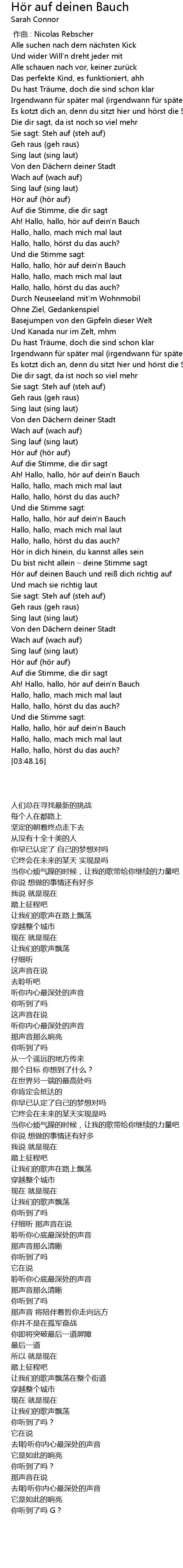 | [02:40.34] | Hallo, hallo, hör auf dein'n Bauch |