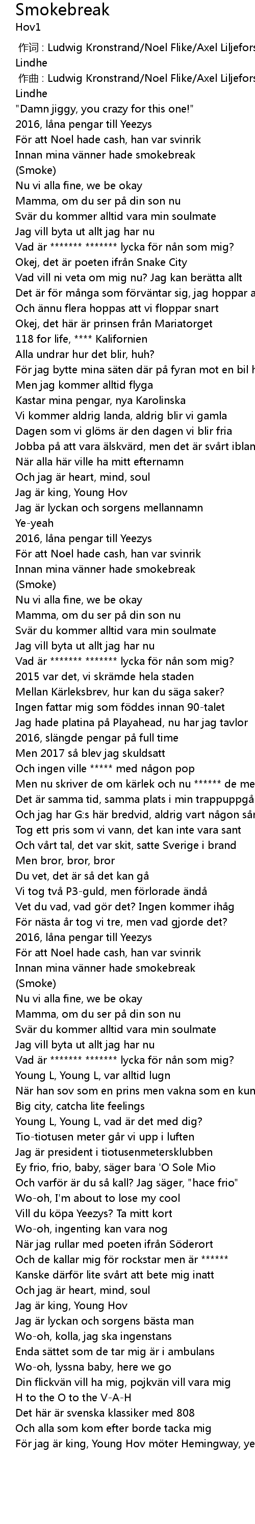 | [01:36.50] | Men nu skriver de om kärlek och nu ****** de med oss |