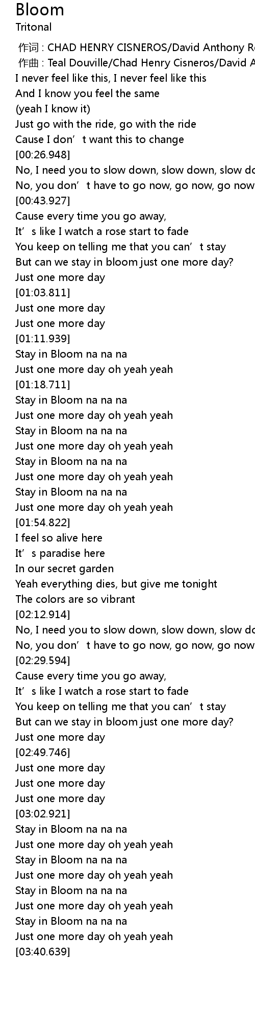 | [00:56.712] | But can we stay in bloom just one more day? |
