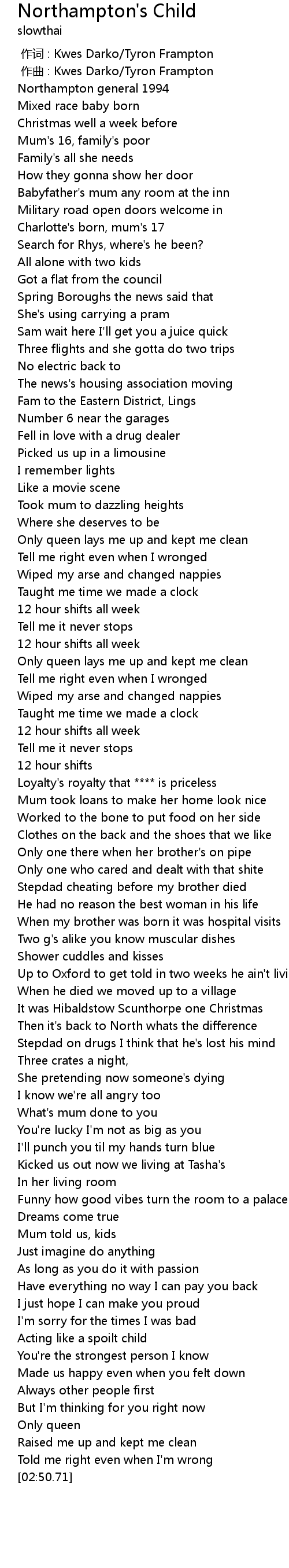 | [00:33.95] | Charlotte' s born, mum' s 17 |