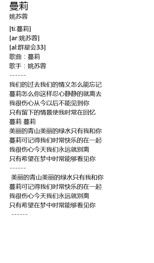 | [00:49.12] | 蔓莉 蔓莉 |