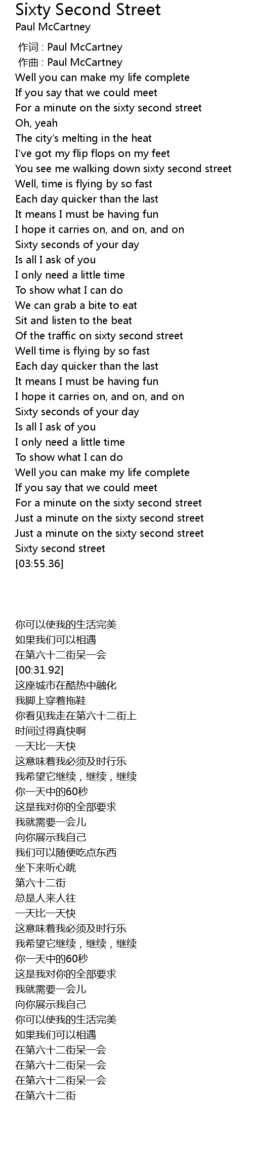 | [00:01.000] | zuò qǔ : Paul McCartney |