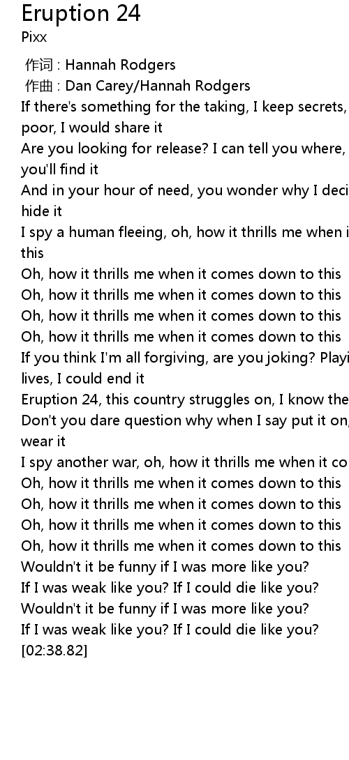 | [01:27.33] | Eruption 24, this country struggles on, I know they fake it |