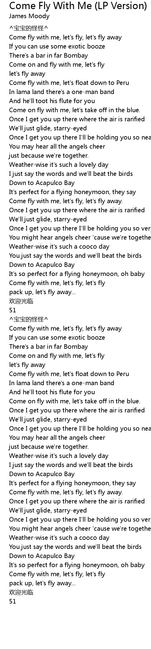 | [00:41.47] | Come on fly with me, let' s take off in the blue. |