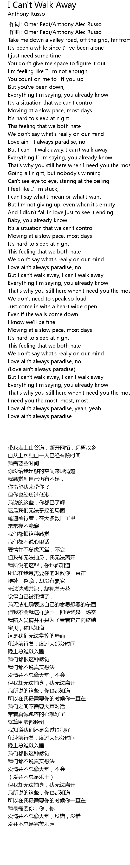 | [00:00.000] | 作词 : Omer Fedi/Anthony Alec Russo |