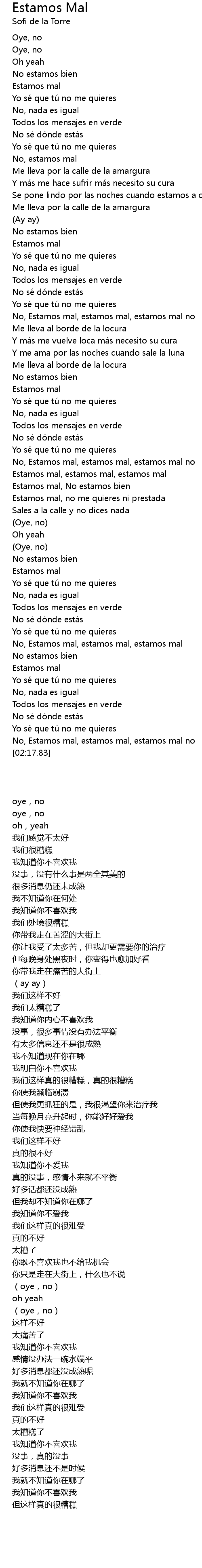 | [00:50.77] | No, Estamos mal, estamos mal, estamos mal no |