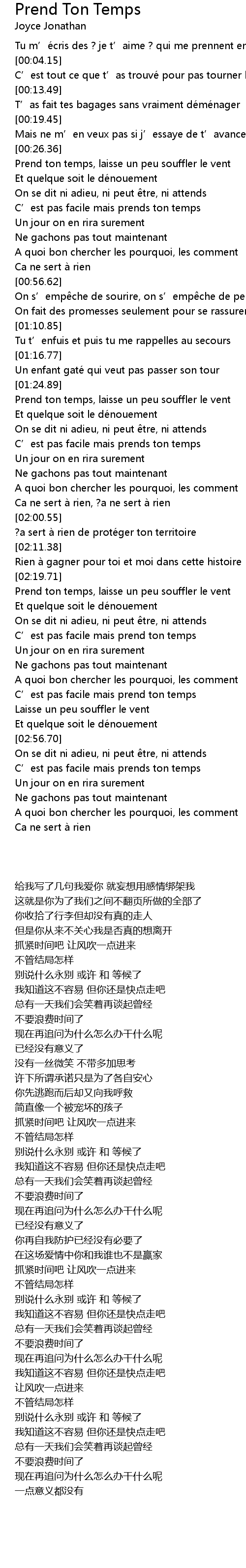 | [00:40.60] | C' est pas facile mais prends ton temps |