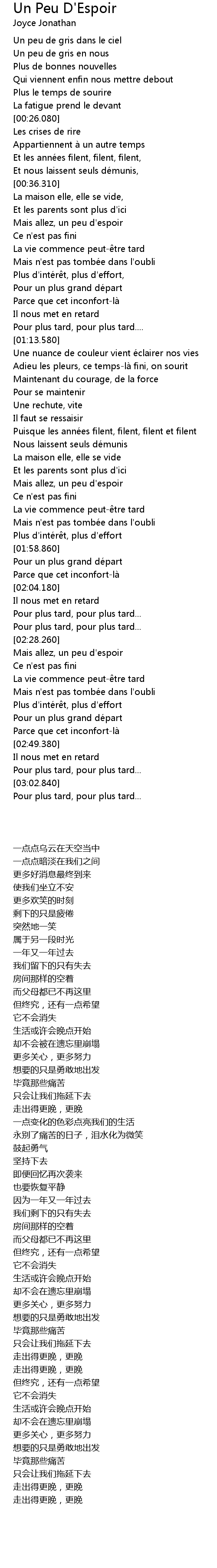 | [02:31.510] | Mais allez, un peu d' espoir |