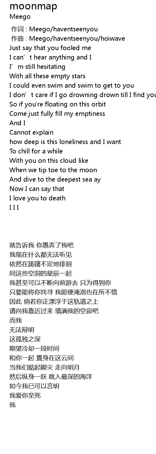 | [00:00.000] | 作词 : Meego/haventseenyou |