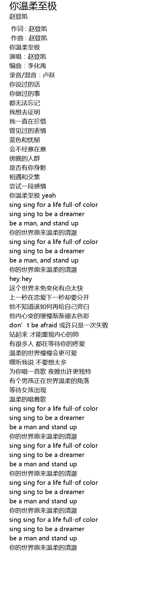 | [00:00.000] | 作词 : 赵登凯 |
