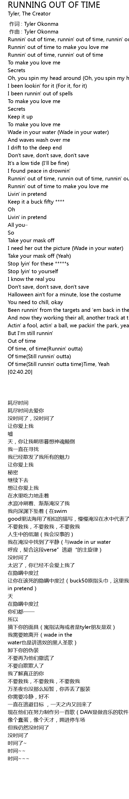 | [02:22.76] | Of time, of time(Runnin' outta) |