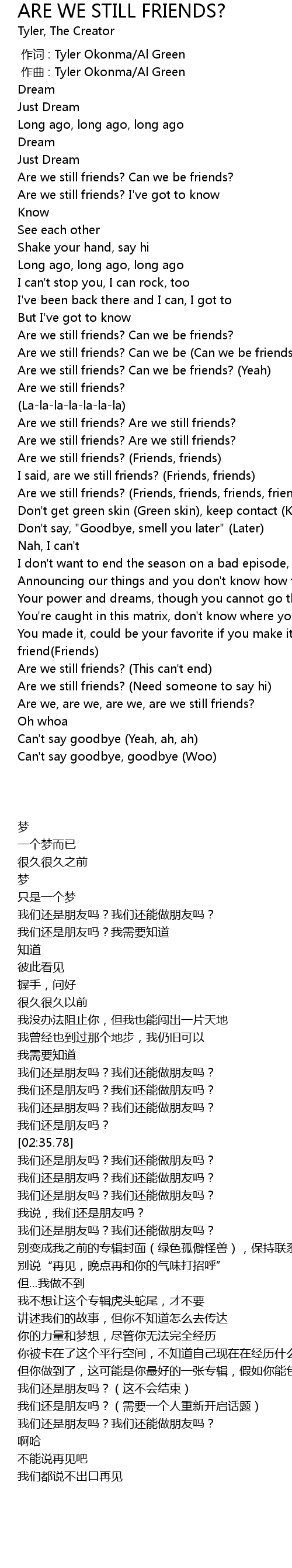 | [00:35.15] | Are we still friends? Can we be friends? |