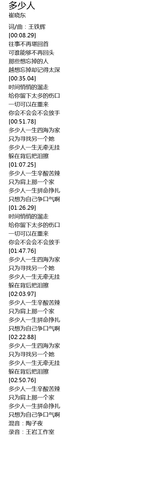 | [02:51.78] | 多少人一生辛酸苦辣 |