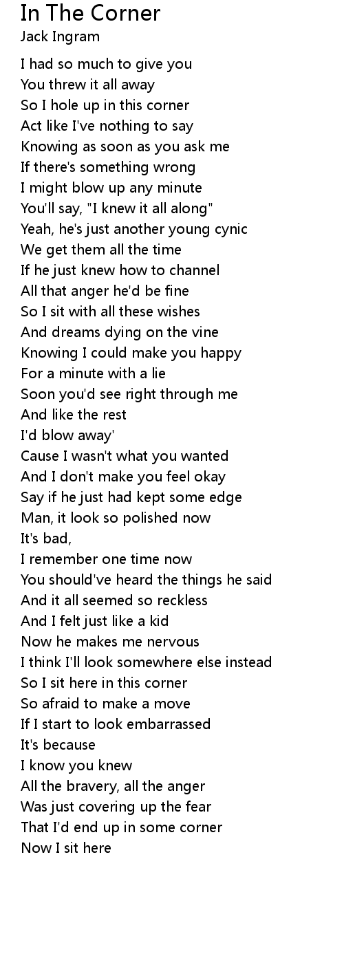 So I sit here in this corner |