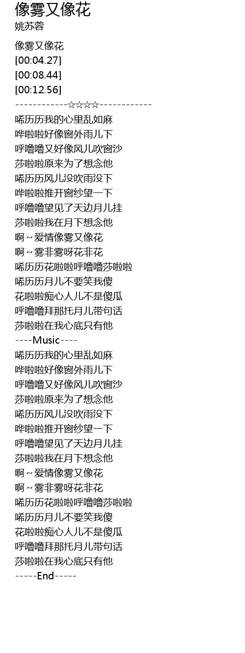 | [02:34.96] | 啊~雾非雾呀花非花 |