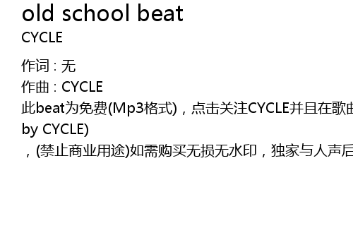 | 此beat为免费(Mp3格式),点击关注CYCLE并且在歌曲评论即可使用,若用于歌曲发表时请【务必一定在歌名处注明】(Prod by CYCLE) ,(禁止商业用途)如需购买无损无水印,独家与人声后期请咨询! |