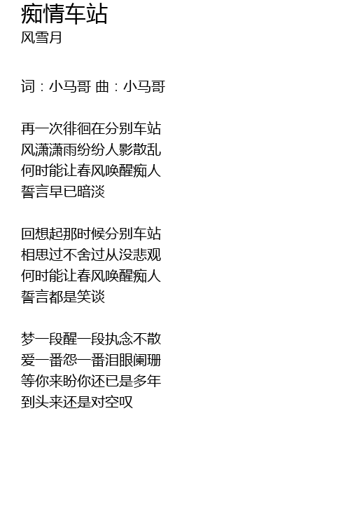 | 词:小马哥 曲:小马哥 | |