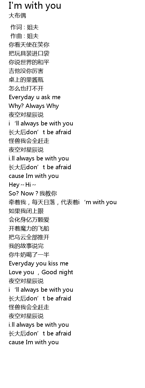 | [01:21.685] | qian zhe wo, mei tian ri luo, dai biao zhe i' m with you |