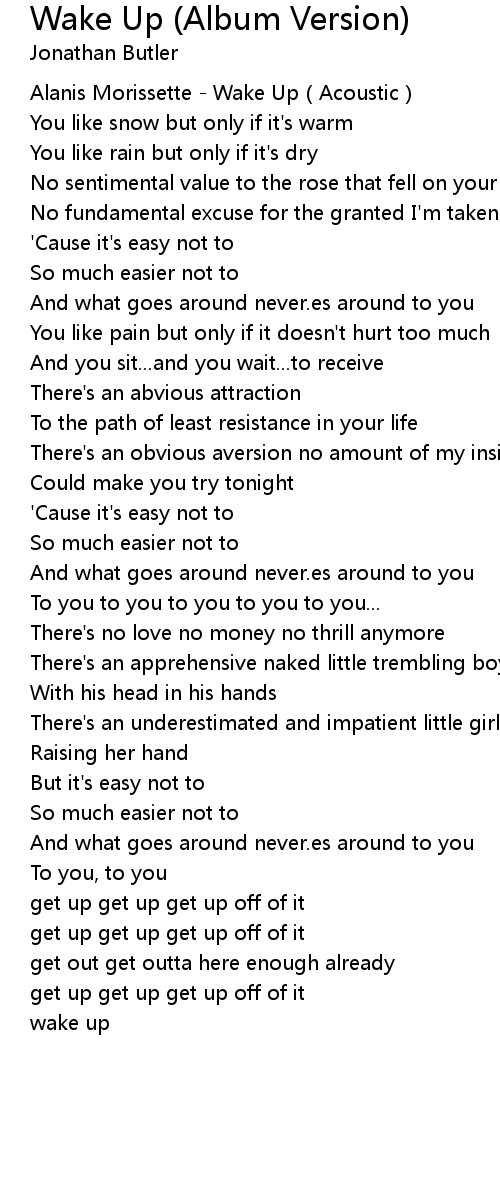 | [00:00.00] | Alanis Morissette Wake Up Acoustic |