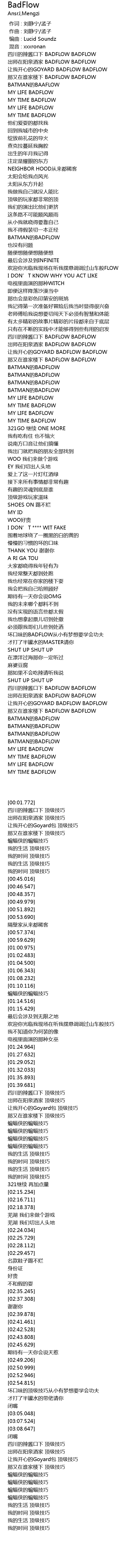 | [03:32.767] | BATMAN的BADFLOW |