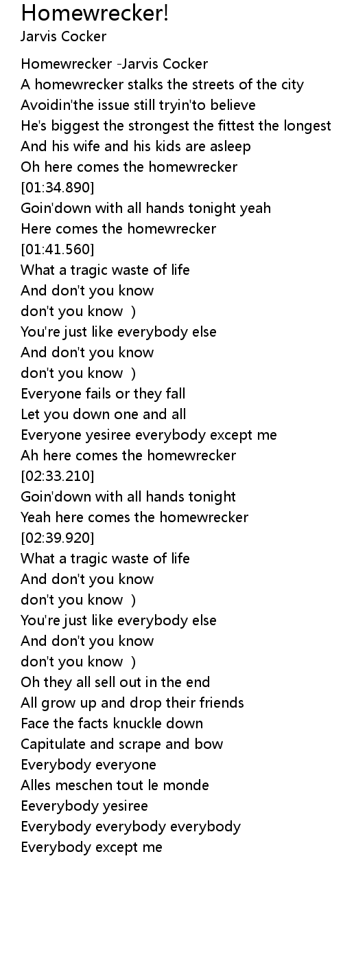 | [00:02.890] | Homewrecker Jarvis Cocker |