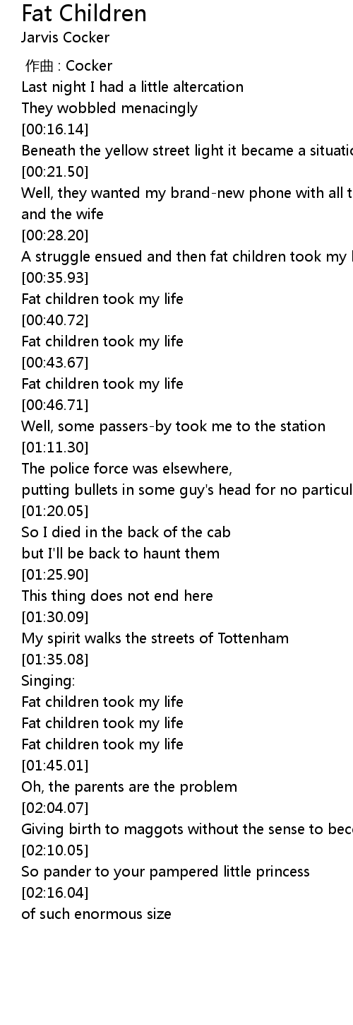 | [00:44.53] | Fat children took my life |