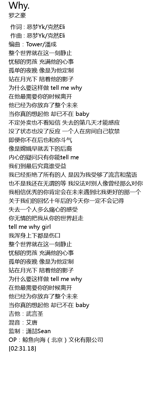 | [02:11.37] | wei shi me yao zhe yang zuo tell me why |