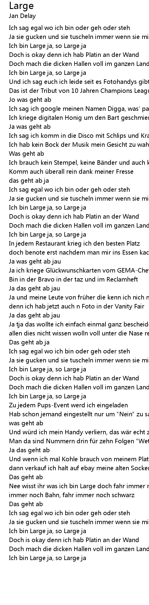 | Doch mach die dicken Hallen voll im ganzen Land | |