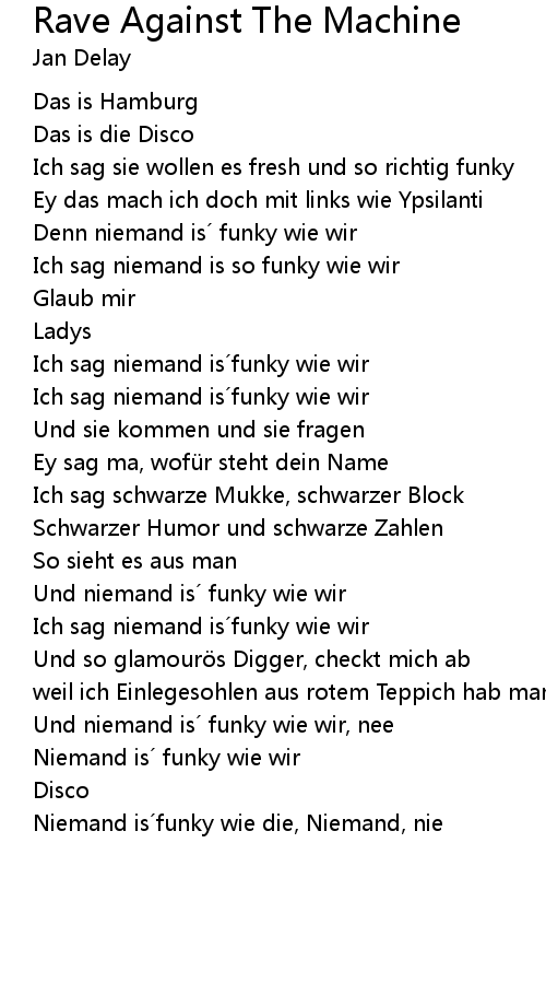 | Und niemand is funky wie wir, nee | |