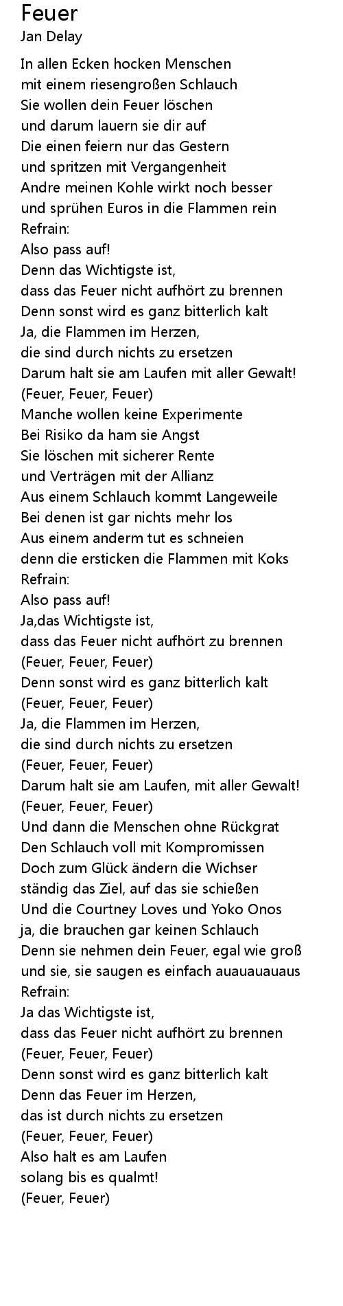 | Denn sie nehmen dein Feuer, egal wie gro | |