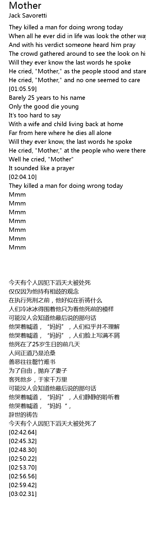 He cried, "Mother," as the people stood and stared |