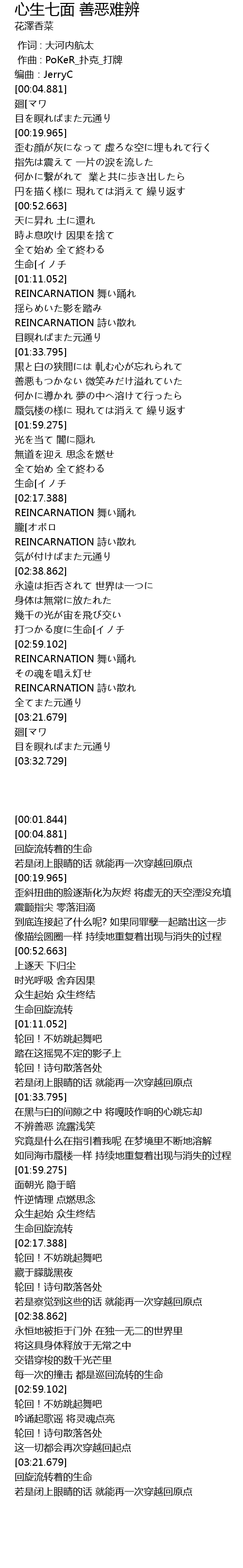 | [03:09.782] | REINCARNATION 詩い散れ |