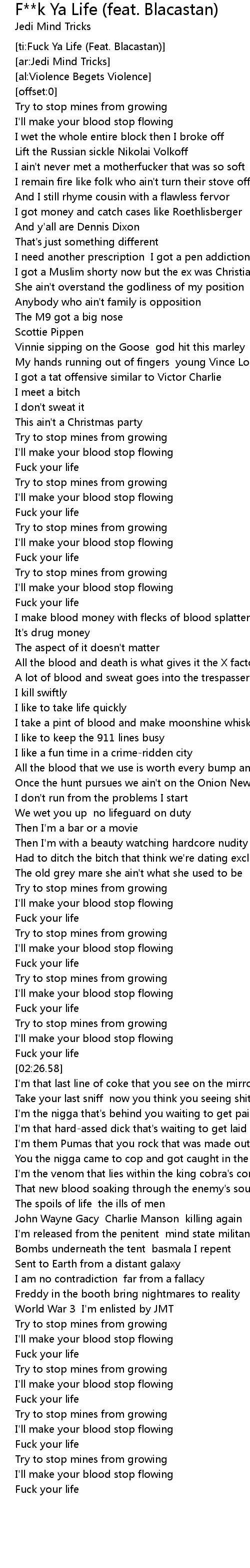 [ti:Fuck Ya Life (Feat. Blacastan)] |